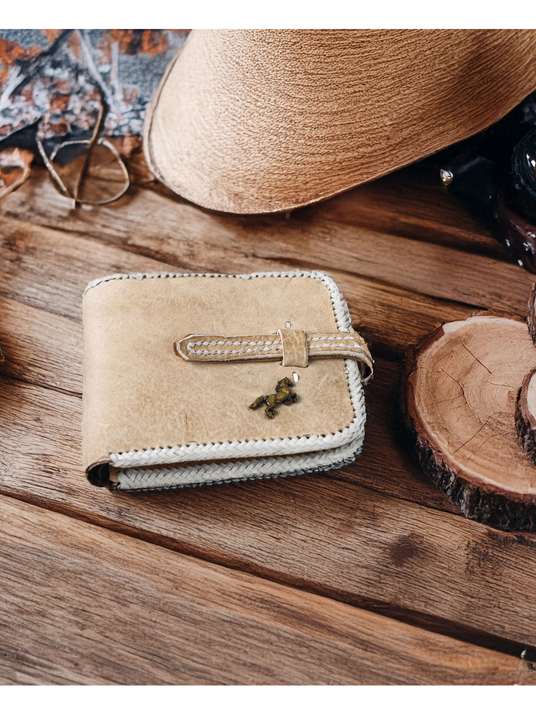 Billetera cuero crudo. Confeccionada de Cuero superior pulido a mano por artesanos y en el frente un pasador para ser sostenida. Ademas lleva en la parte inferior del pasador una figura plateada . Combina un estilo único de elegancia y estilo. Hecho con materiales de lujo que marcan tendencia Cada una de nuestras billeteras, encarna nuestro legendario compromiso con la calidad y la atención al detalle.