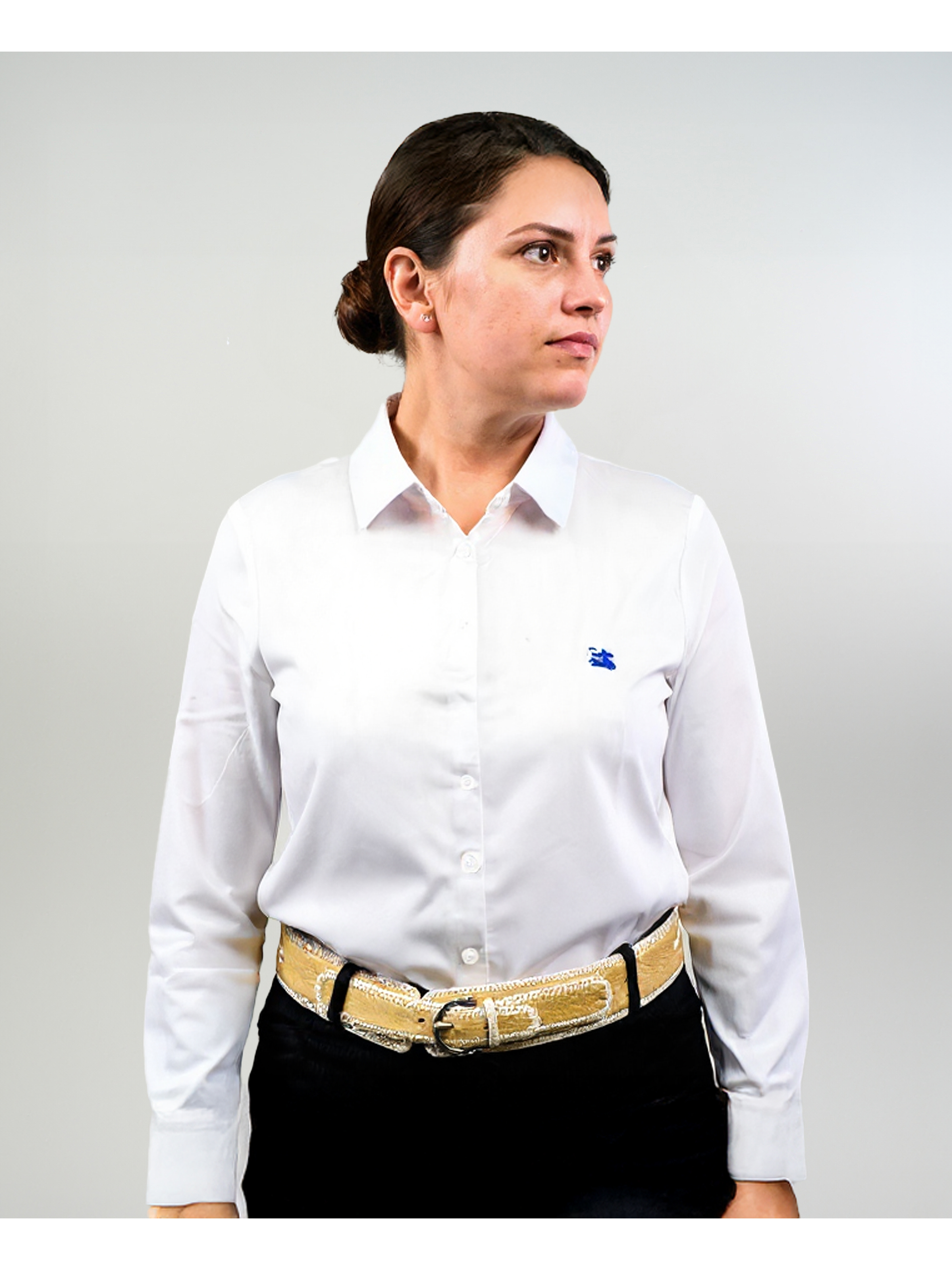 Confeccionada en una mezcla de algodón y fibras resistentes, esta blusa ofrece ligereza, suavidad y gran durabilidad, ideal para faenas de campo, cabalgatas o entrenamientos ecuestres. Su corte femenino garantiza libertad de movimiento y un calce cómodo, manteniendo una apariencia prolija y funcional.