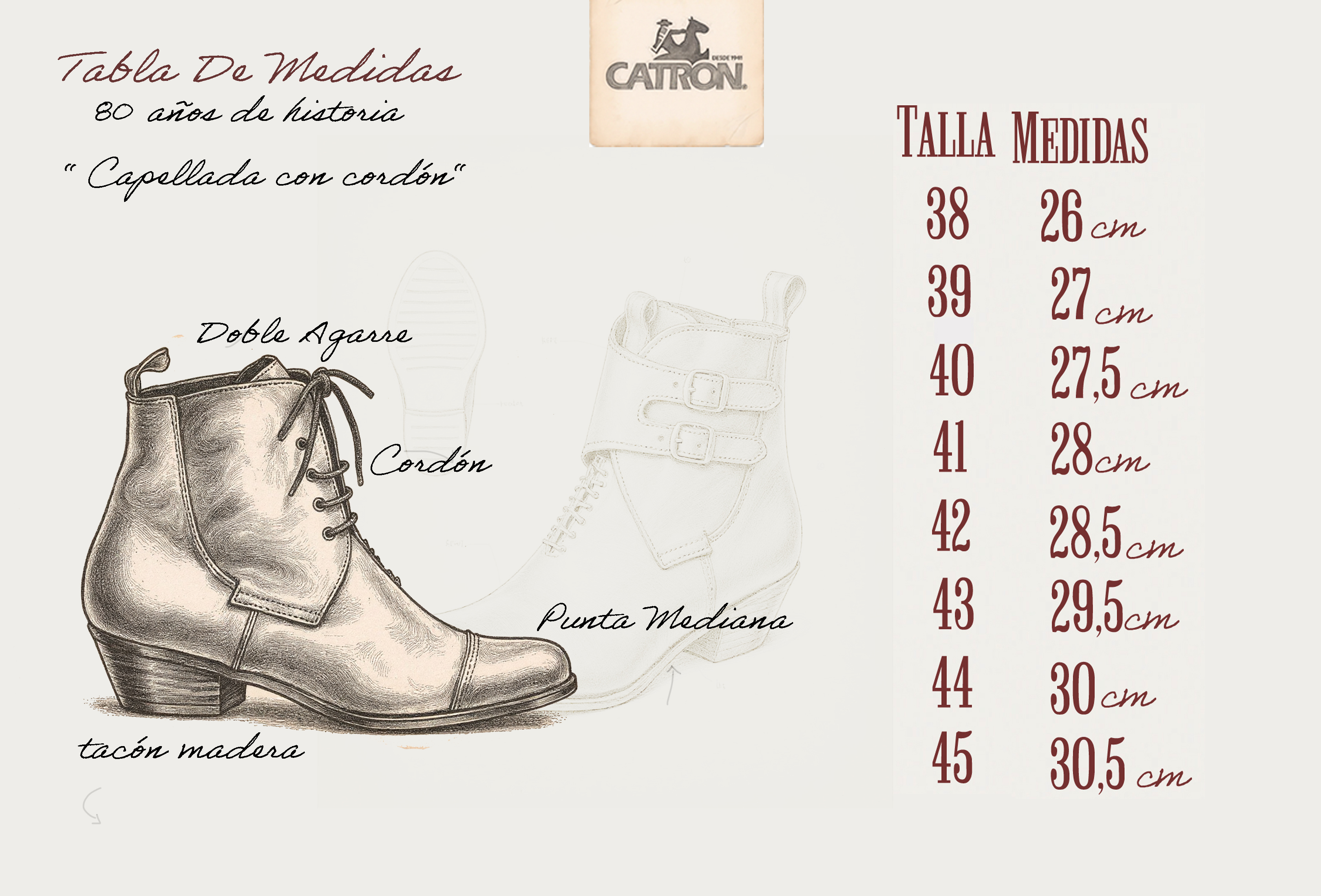 Fabricadas en Chile donde la tradición de crear calzado para el huaso se remonta a mediados del siglo XVII, se horman, cosen y se trabajan completamente a mano, utilizando cueros de alta calidad. Es un botín construido en tres niveles con un recubrimiento en los costados. Diseñadas para brindar estabilidad y comodidad, El botín de Huaso tiene más soporte alrededor del tobillo que las de campo tradicional. En la parte superior adelante y atrás cuenta con una robusta cinta que permite sacar y poner con facilidad. El botín de huaso cuero con cordones planta suela y taco madera Es un botín echo completamente de cuero fuerte y tiene cinco niveles de agarre hacia el exterior y tiene una puntera redonda, un tacón completamente de madera. Su construcción de calidad garantiza comodidad y soporte en cada paso.