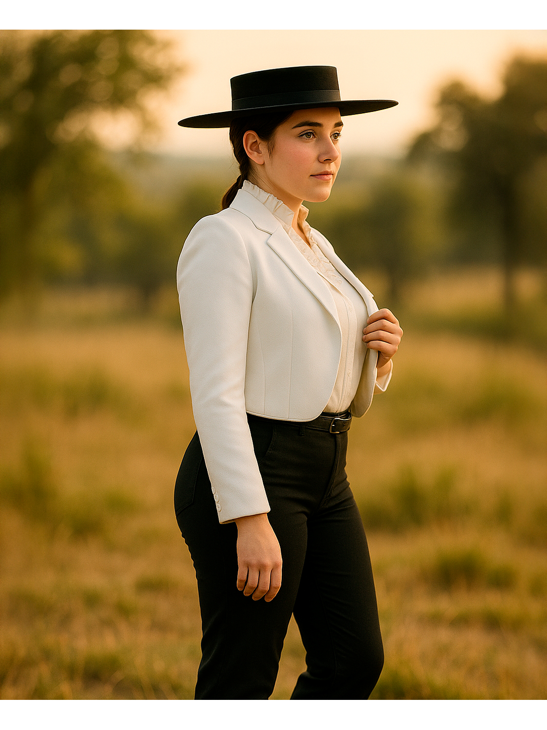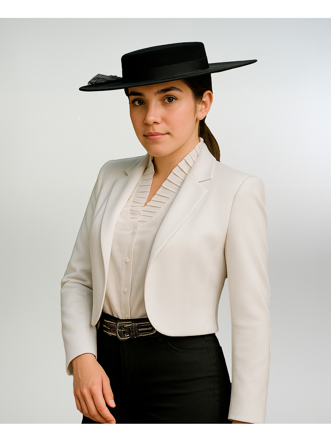 Gracias a su confección precisa y a la calidad de sus materiales, la Chaqueta de Huasa Corralera Blanca Catron representa el equilibrio perfecto entre estética y funcionalidad, fiel al espíritu de la huasa chilena.