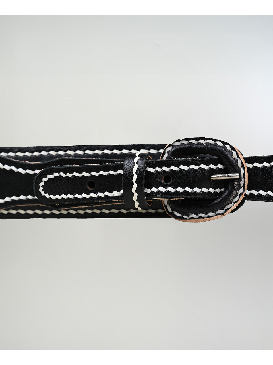 Cinturón De Cuero Bayo Negro Cocido A Tiento