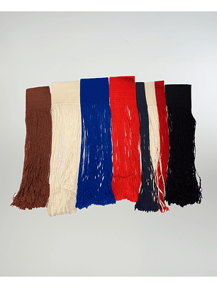Su confección artesanal garantiza uniformidad, resistencia y caída perfecta, conservando el aspecto delicado y distinguido que caracteriza la vestimenta tradicional chilena. Disponibles en múltiples colores, estos flecos permiten personalizar tus prendas, aportando un detalle lleno de identidad y estilo.