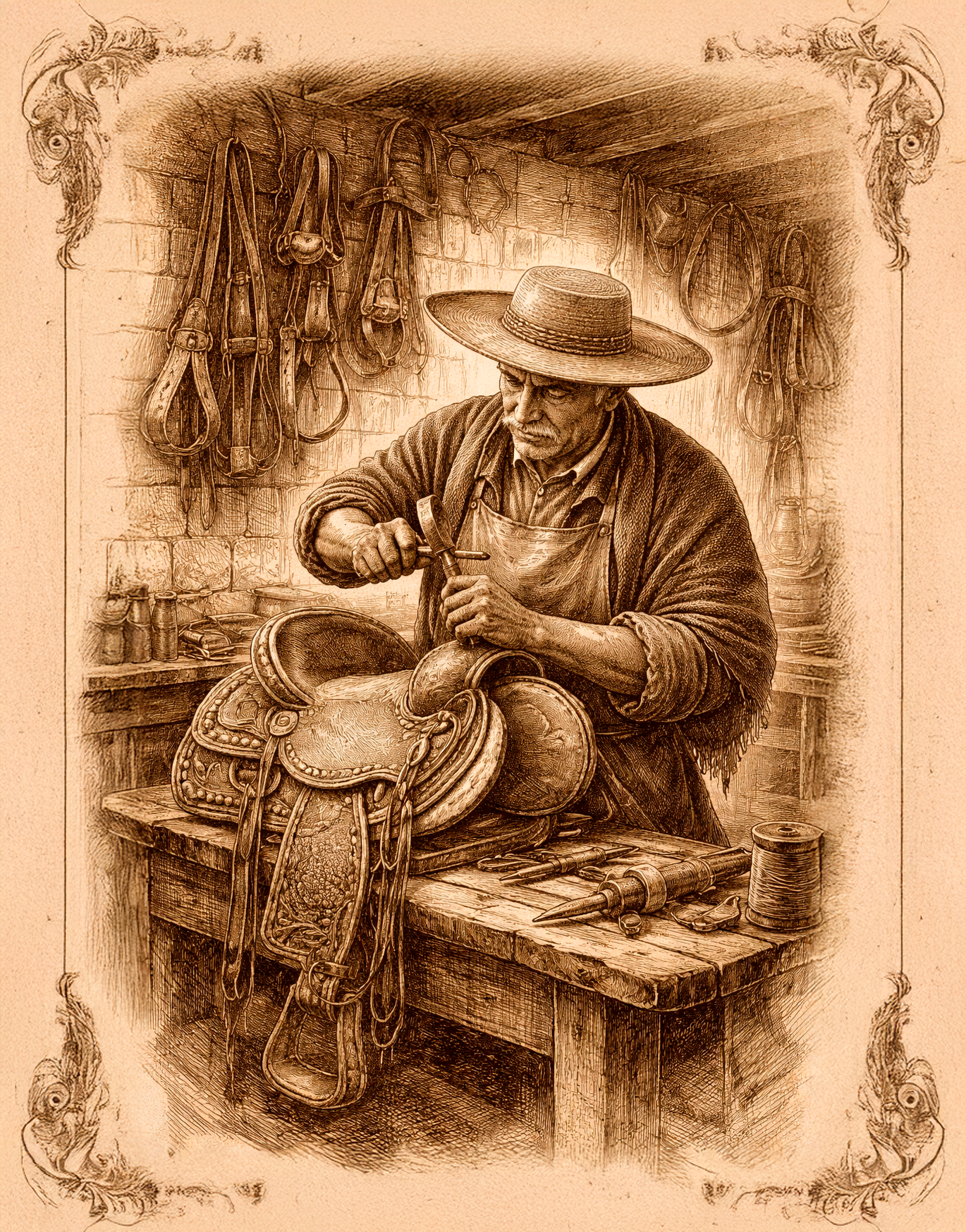 Catron camina junto a casas talabarteras y a maestros del oficio que han dedicado su vida a la montura. Manos que, generación tras generación, han aprendido a leer el cuero, a sentir la forma y a buscar el equilibrio que distingue a una verdadera montura. No creemos en la producción en masa. Creemos en el tiempo, en el saber y en la tradición. Por eso elegimos, cuidamos y ofrecemos monturas nacidas del trabajo de quienes realmente honran el oficio..