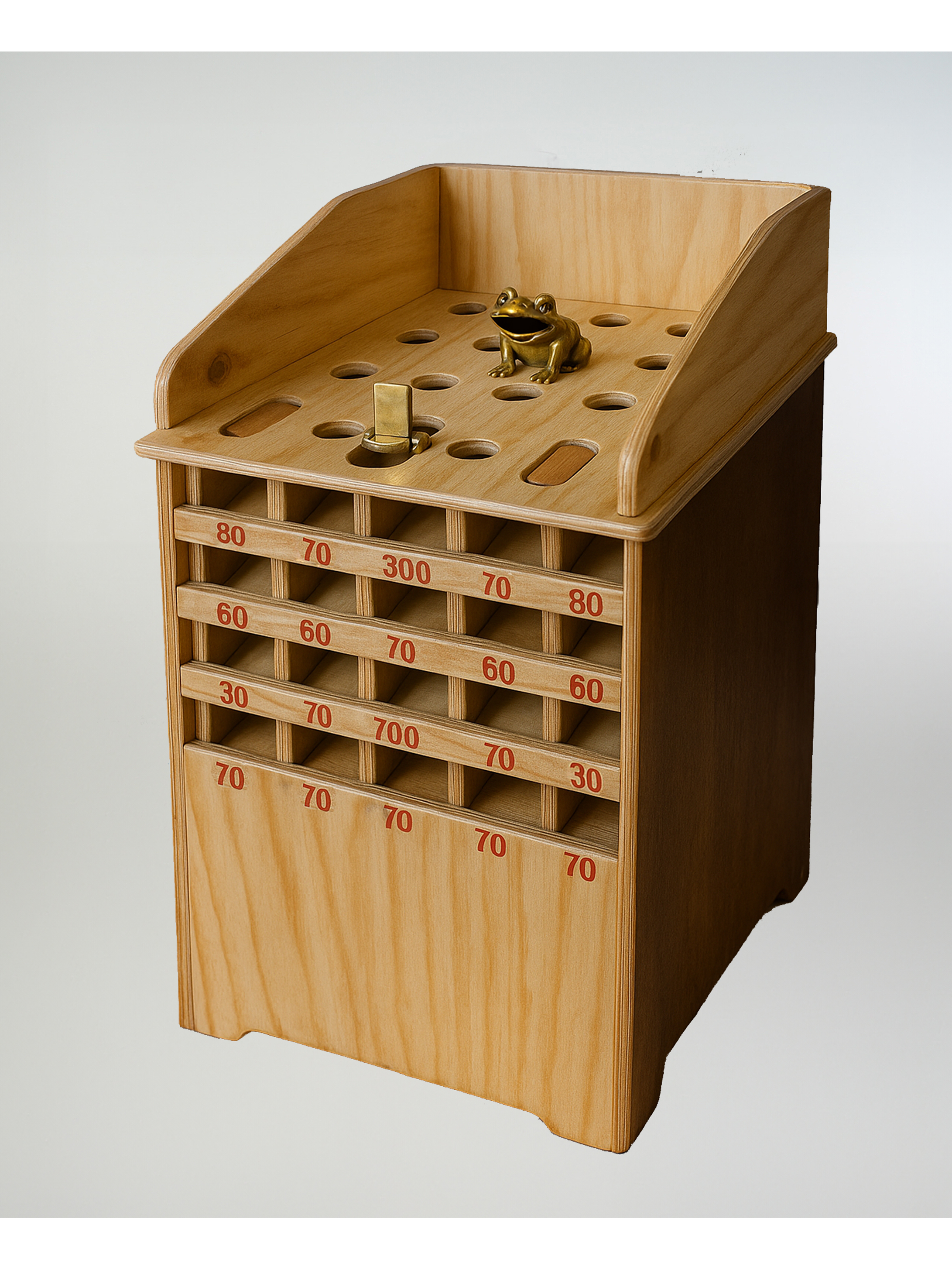 Descubre el emocionante Juego de la Rana, una entretenida opción de entretenimiento para disfrutar en familia y con amigos. Este juego está fabricado en madera terciada de alta calidad, garantizando durabilidad y resistencia en cada partida. La rana de bronce que incluye es un elegante detalle que realza el aspecto del juego, haciéndolo ideal tanto para uso recreativo como decorativo.