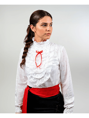 Blusa De Huasa Elegante Plisada Blanca Catron
